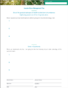 How do we make investing less stressful? A solution is to make a plan—An Investor Stress Management Plan or "ISMAP." The ISMAP is designed to prepare investors for inevitable scary moments and provide techniques to reduce stress to a manageable level. It contains actions that can help take advantage of market turmoil to actually improve long-term performance potential.
